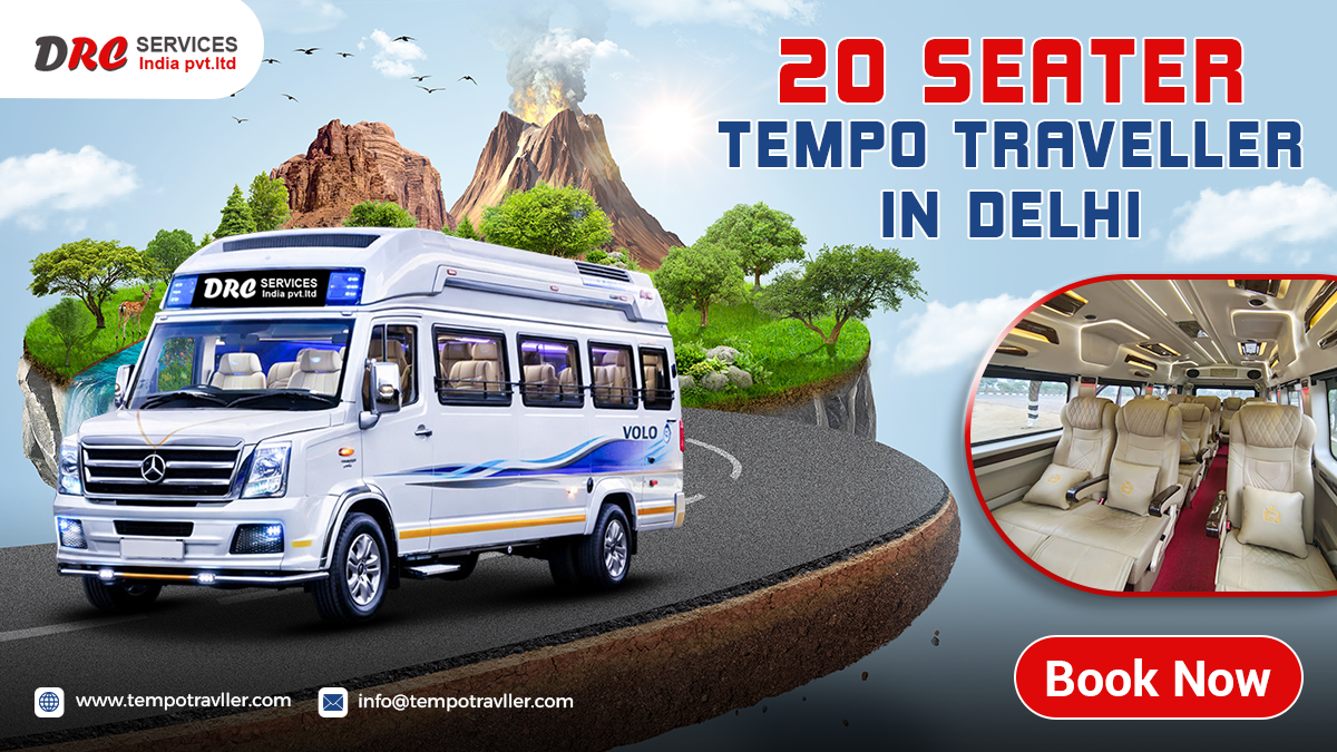 DRC Services India Pvt. Ltd. offers a 20 passenger Tempo Traveller on rent in Delhi to make group journeys easy, safe, and comfortable for everyone. Our head office is based in Delhi, so we are able to provide quick booking assistance and strong local support across the entire city. Every AC Tempo Traveller in our fleet is neat, properly cleaned, well-maintained, and fully air-conditioned, with soft, comfortable, and relaxing seats. Our drivers are skilled and well-trained, with good knowledge of Delhi roads, traffic conditions, and travel routes, which helps keep every trip smooth, peaceful, and tension-free. Whether you need a vehicle for a family trip, office travel, airport pickup or drop service, sightseeing, or a city tour, our 20 passenger Tempo Traveller rental in Delhi continues to be a reliable, economical, and trusted travel option.